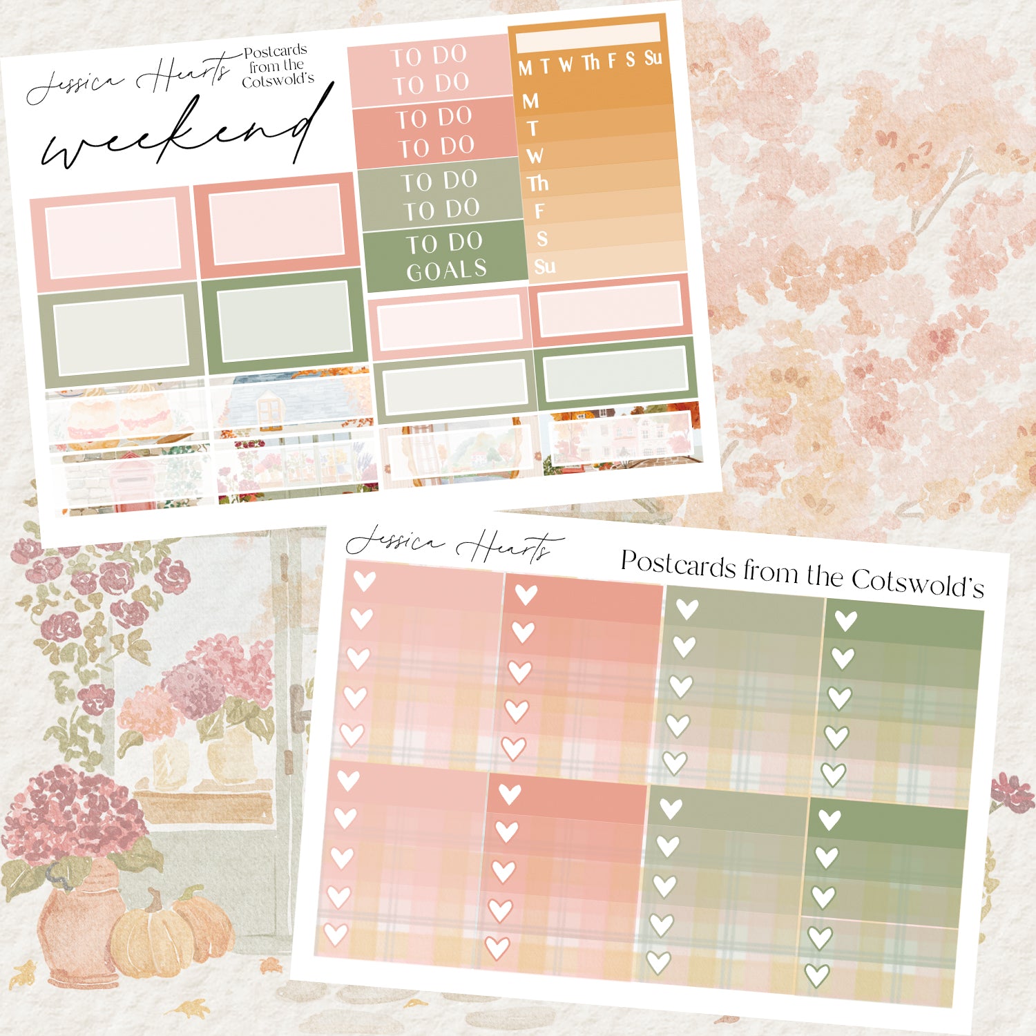 The width of full boxes, half boxes and all labels measures 1.5" -fitting most popular planners and inserts. This weekly kit includes six sheets of stickers.