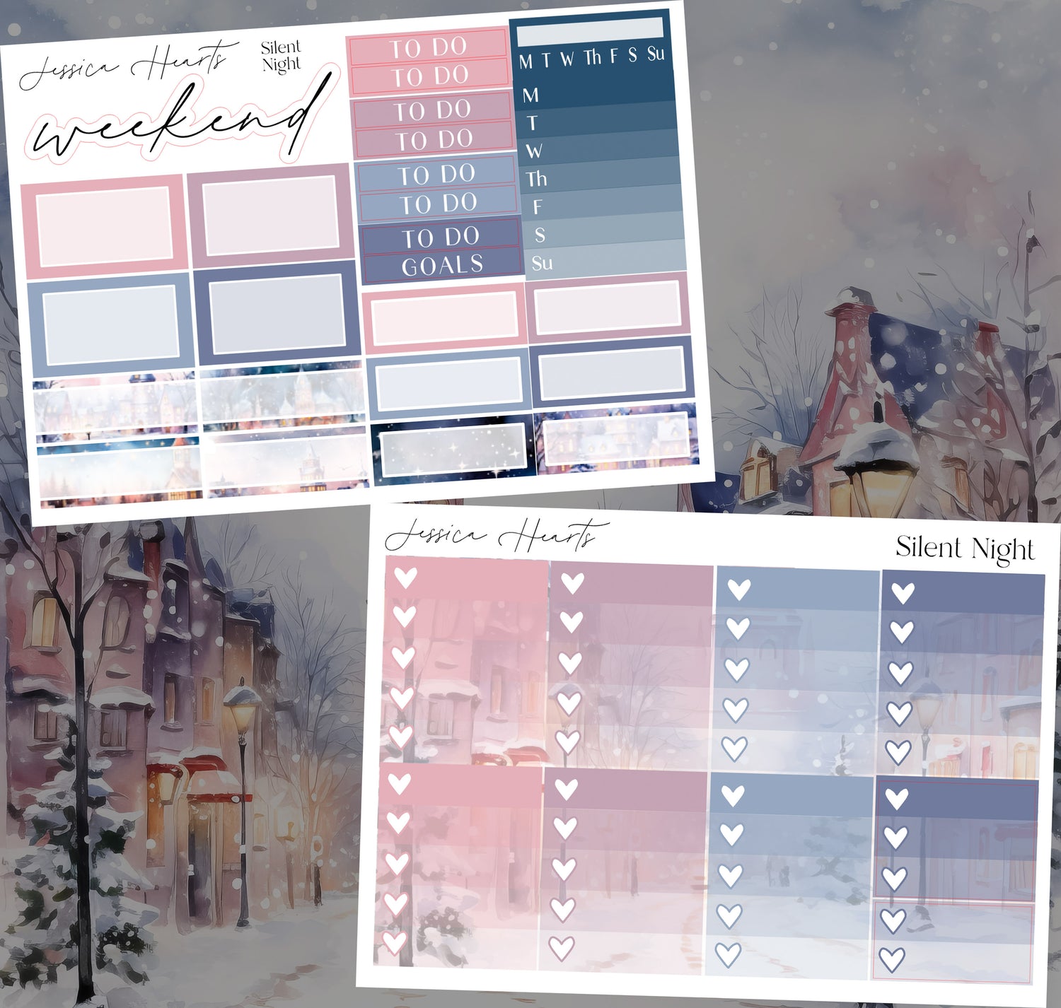 The width of full boxes, half boxes and all labels measures 1.5" -fitting most popular planners and inserts. This weekly kit includes six sheets of stickers.